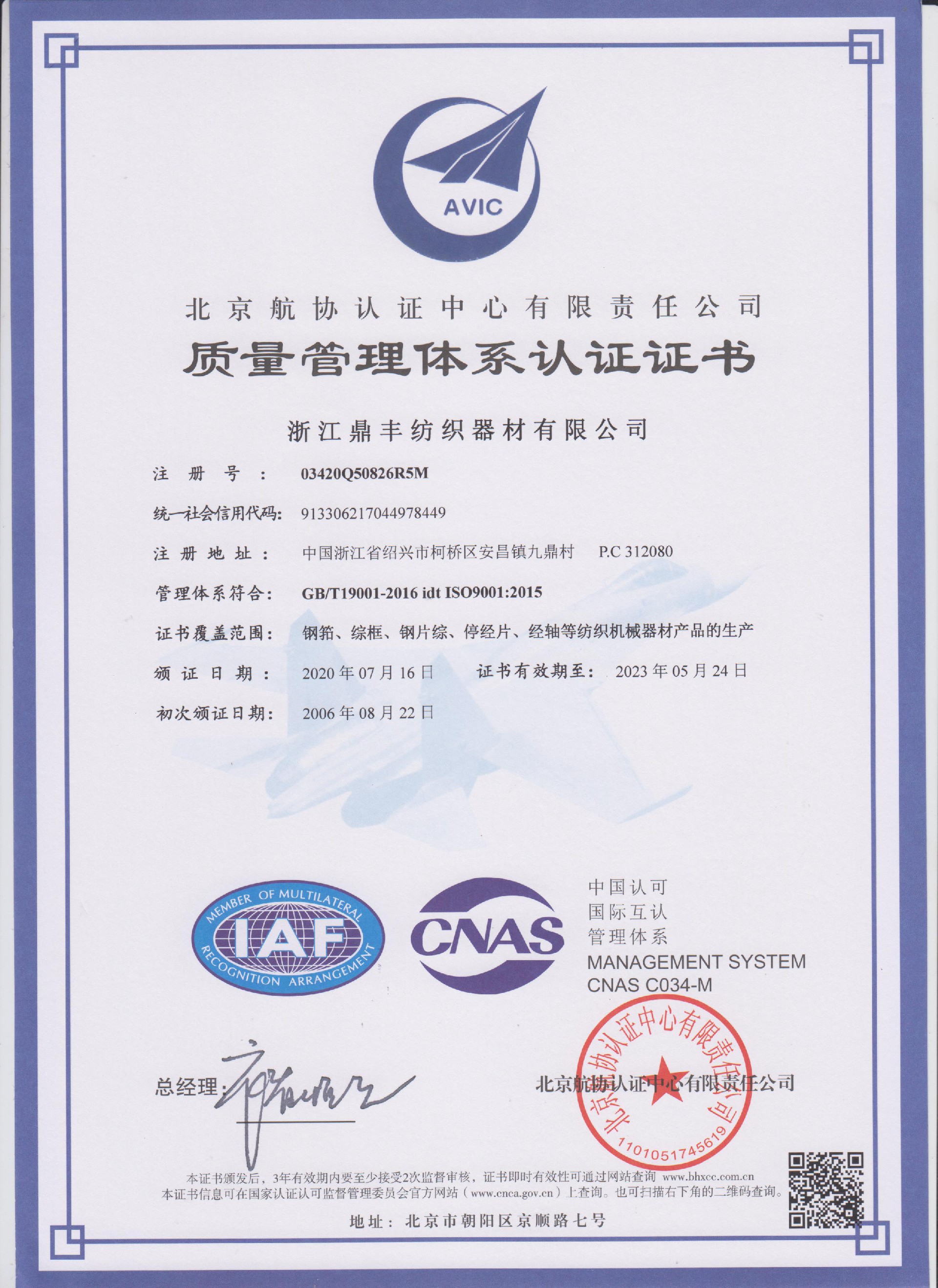 浙江鼎豐紡織器材有限公司始建于1986年,是一家專業(yè)生產(chǎn)各類無梭織機(jī)用鋼筘:噴氣筘、噴水筘、劍桿筘、其他類型鋼筘;鋁合金綜框、鋼片綜、停經(jīng)片、經(jīng)軸、織軸、卷布輥等產(chǎn)品及配件的民營(yíng)企業(yè)。